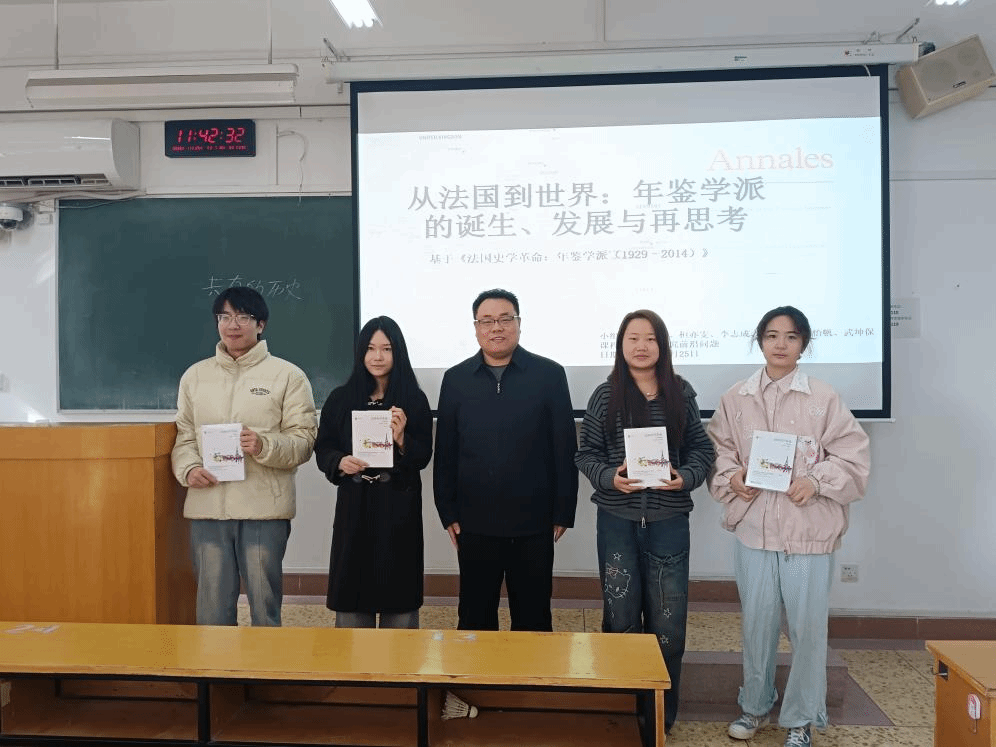 在读书会的最后环节,杨磊向本次读书会每组代表同学赠送了本次阅读的书籍。通过读书交流会活动,世界史实验班同学们加深了对法国年鉴学派的认识,培养了跨学科方法论和史学思维。在老师的引导与同学们的积极参与下,大家深化了对世界史研究方法与学术思想的理解,为后续系列学术活动的开展积累了宝贵经验,也为伟德国际1949官网世界史学科的人才培养与学术建设注入了持续动力。