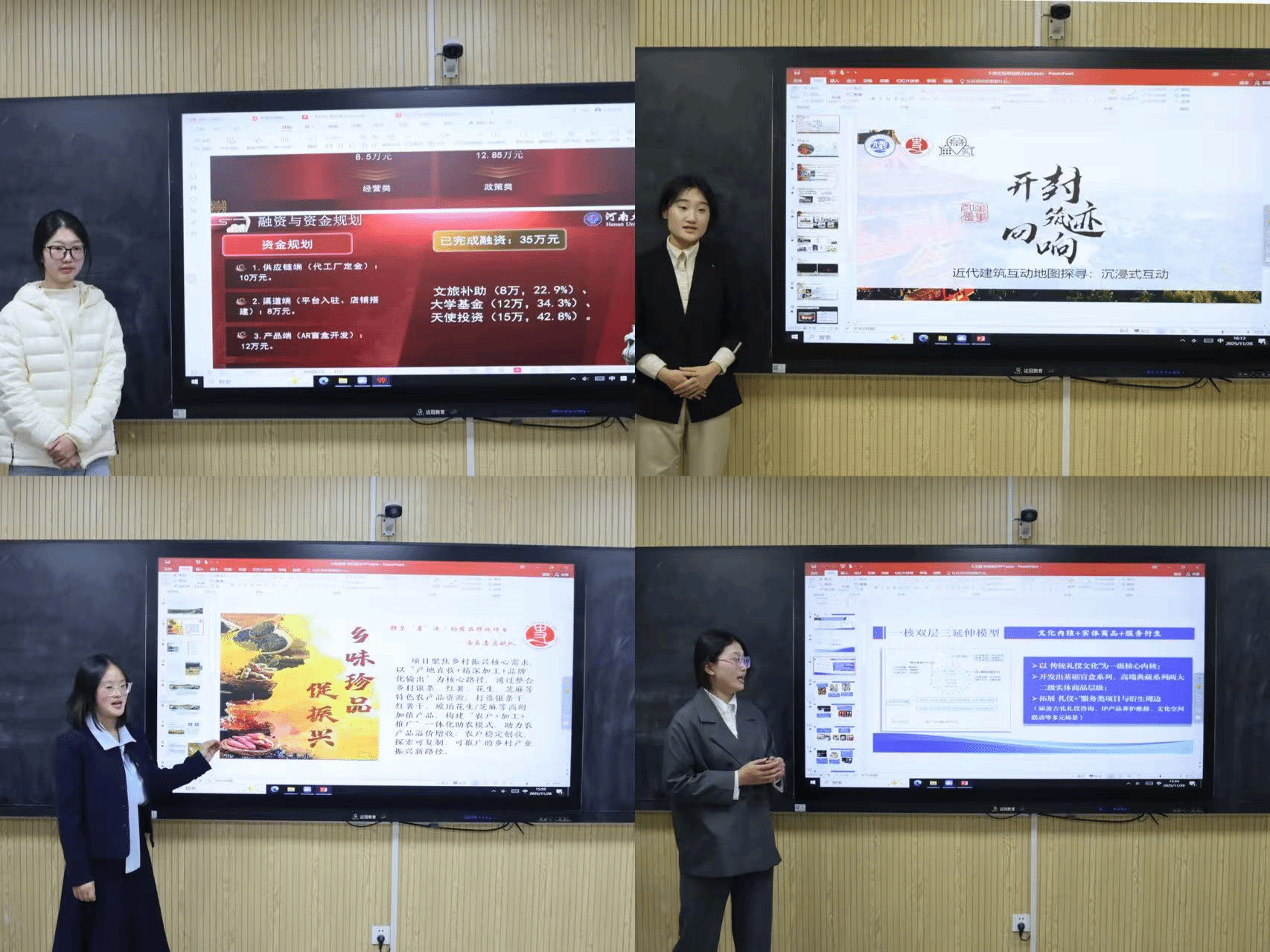 本次共有10支队伍参赛,通过项目路演与现场答辩两个环节进行展示。参赛项目主题涵盖乡村振兴与农业现代化、社会治理与公共服务、生态文明建设与绿色低碳发展以及文化创意与区域合作等多个领域。各团队围绕项目背景、创新亮点、社会价值及实施可行性等方面展开系统阐述,深度融合专业知识与现实需求,彰显出鲜明的历史学科特色与实践价值。