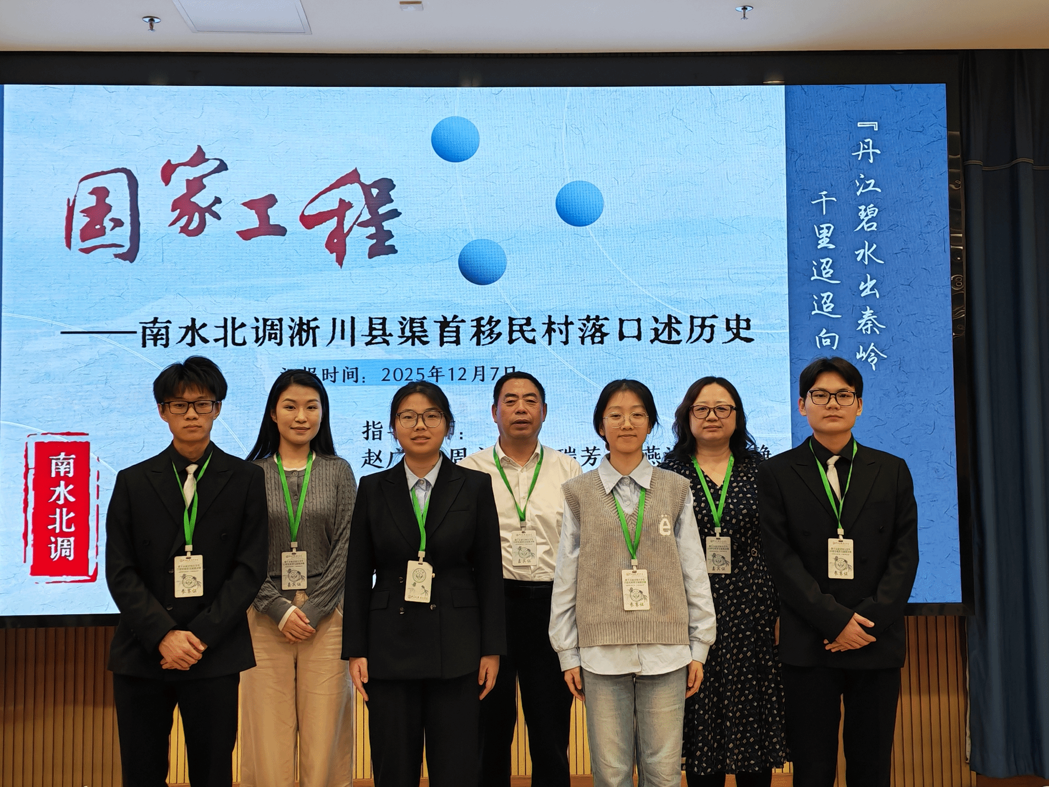“渠首移民溯源队”由2023级、2024级历史学专业詹本维、娄洞梁、殷顺一、敬婧、王奕涵、刘梦华等六位本科生组成。团队以国家重大工程——南水北调淅川县渠首移民村落为研究对象,在赵广军、周文凯、王瑞芳、付燕鸿、胡优静等五位老师的指导下,历时数月深入访谈、整理素材、修订文本,最终完成近三十三万字的口述史成果整理稿。