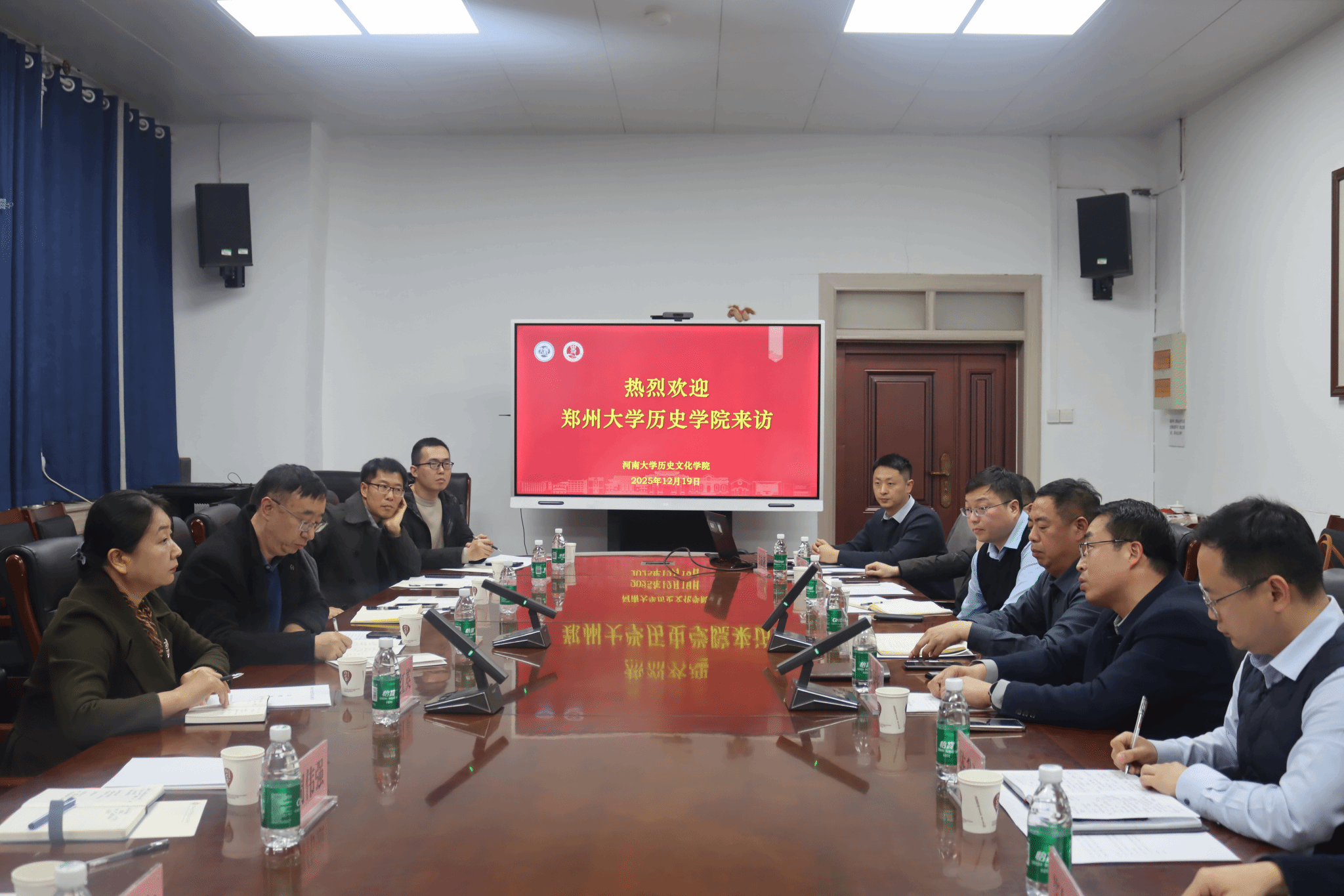 祁琛云阐述了公司以团队建设为核心的工作思路,介绍了公司推动高质量历史团队建设的具体措施,并详细说明了公司引导高水平成果产出、支持青年教师成长、重视学术交流与宣传的具体举措。吴志远介绍了郑州大学历史公司团队建设与人才工作的基本情况,表达了希望两院深入交流、优势互补、共同发展的期待。在随后交流中,双方就加强学术研究合作、分享发展新思路、共同提升河南历史学科的学术影响力与发展水平等话题展开了深入探讨。