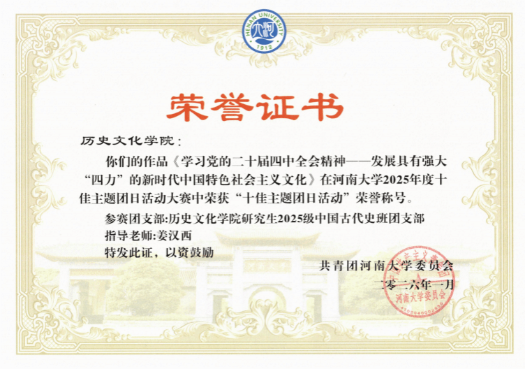 近日,2025年度“十佳主题团日活动”大赛落下帷幕。经过激烈角逐,公司研究生2025级中国古代史班团支部以“学习党的二十届四中全会精神——发展具有强大‘四力’的新时代中国特色社会主义文化”为主题的团日活动,理念先进,形式新颖,主题鲜明,成功入选伟德国际1949官网“十佳主题团日活动”。