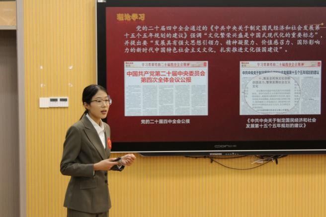 作为公司推荐的优秀代表,研究生2025级中国古代史班团支部紧扣党的二十届四中全会精神核心要义,将“发展具有强大思想引领力、精神凝聚力、价值感召力、国际影响力的新时代中国特色社会主义文化”的重要论述与学科特色、校史底蕴深度融合。比赛现场,团支书王云珊围绕“理论学习—实地探访—参观校史馆—专题研讨”四位一体活动体系进行成果展示。答辩环节,针对评委老师提出的如何将理论转化为实践成果,团支书结合本专业特色进行了回答。此次团日活动既呼应了公司深入学习贯彻党的二十届四中全会精神的工作部署,又发挥了历史学科的专业优势,以“行走的思政课”形式让理论学习走出书本、走进实践,充分展现了新时代青年团员坚定的文化自信与昂扬的精神风貌,获得评委组一致好评。