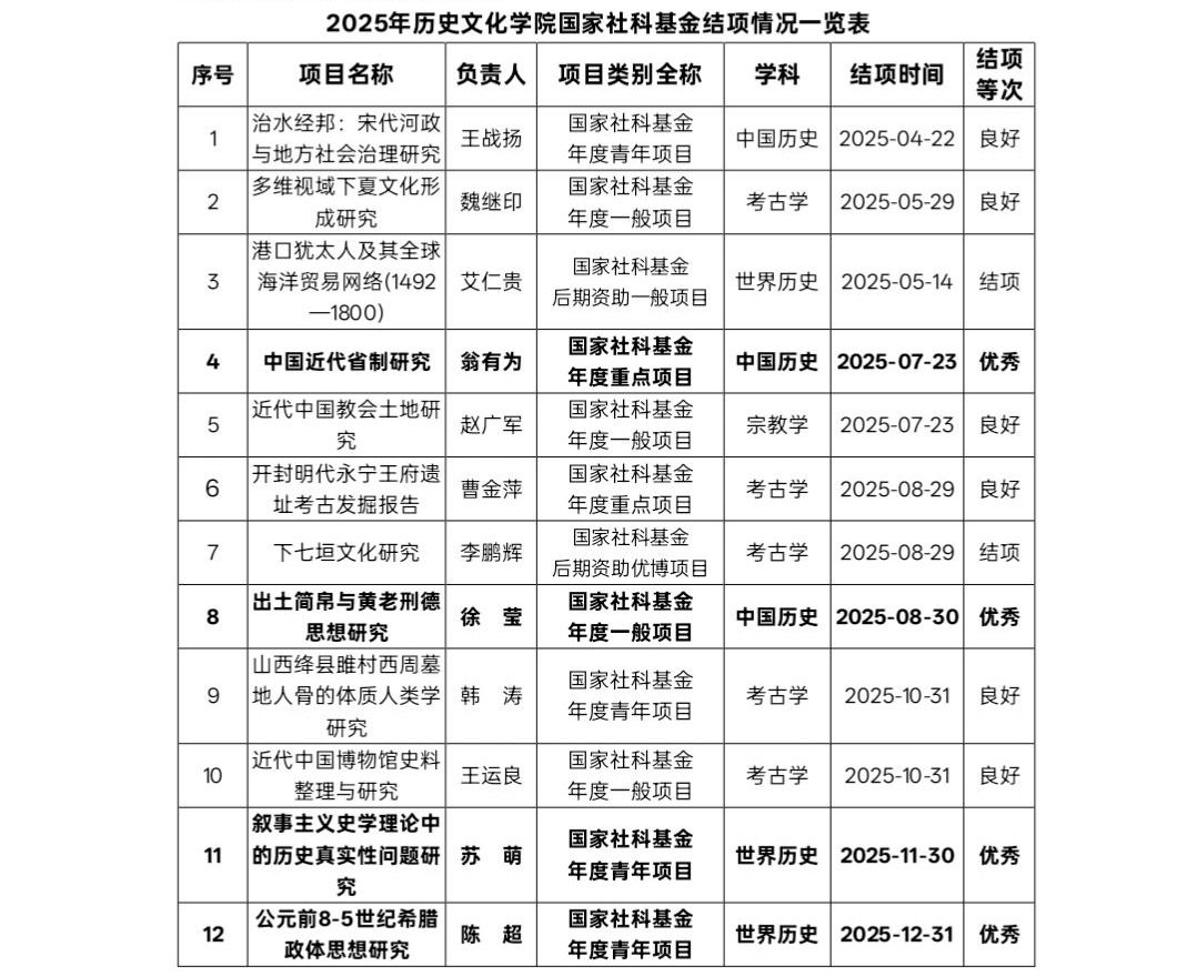 在近期全国哲学社会科学工作办公室公布的2025年国家社科基金项目结项鉴定结果中,伟德国际1949官网1项重点项目、1项一般项目,2项青年项目高质量结项,获评“优秀”等级,充分展现了公司教师在人文社科领域的学术积淀和创新能力。未来,公司将进一步强化有组织科研,在做好国家社科基金申报工作的同时,强化对在研国家项目的全过程、精细化指导和质量跟踪,为国家项目的优质结项提供更加有力的保障。