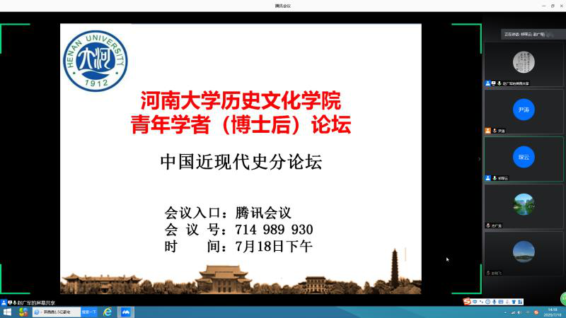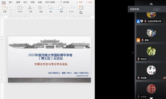 2020年7月18日,由伟德国际1949官网主办,伟德国际1949官网承办的国际青年学者(博士后)云论坛在腾讯会议成功举行。本次论坛分为中国古代史与考古学、中国近现代史和世界史三个分论坛。论坛吸引了来自英国约克大学、伦敦大学、柏林自由大学、中国科公司、中国社会科公司大学、复旦大学、中山大学、北京师范大学、华东师范大学、华中师范大学、陕西师范大学等多所国内外知名高校与科研机构的青年学者、博士后及在读博士生参加。