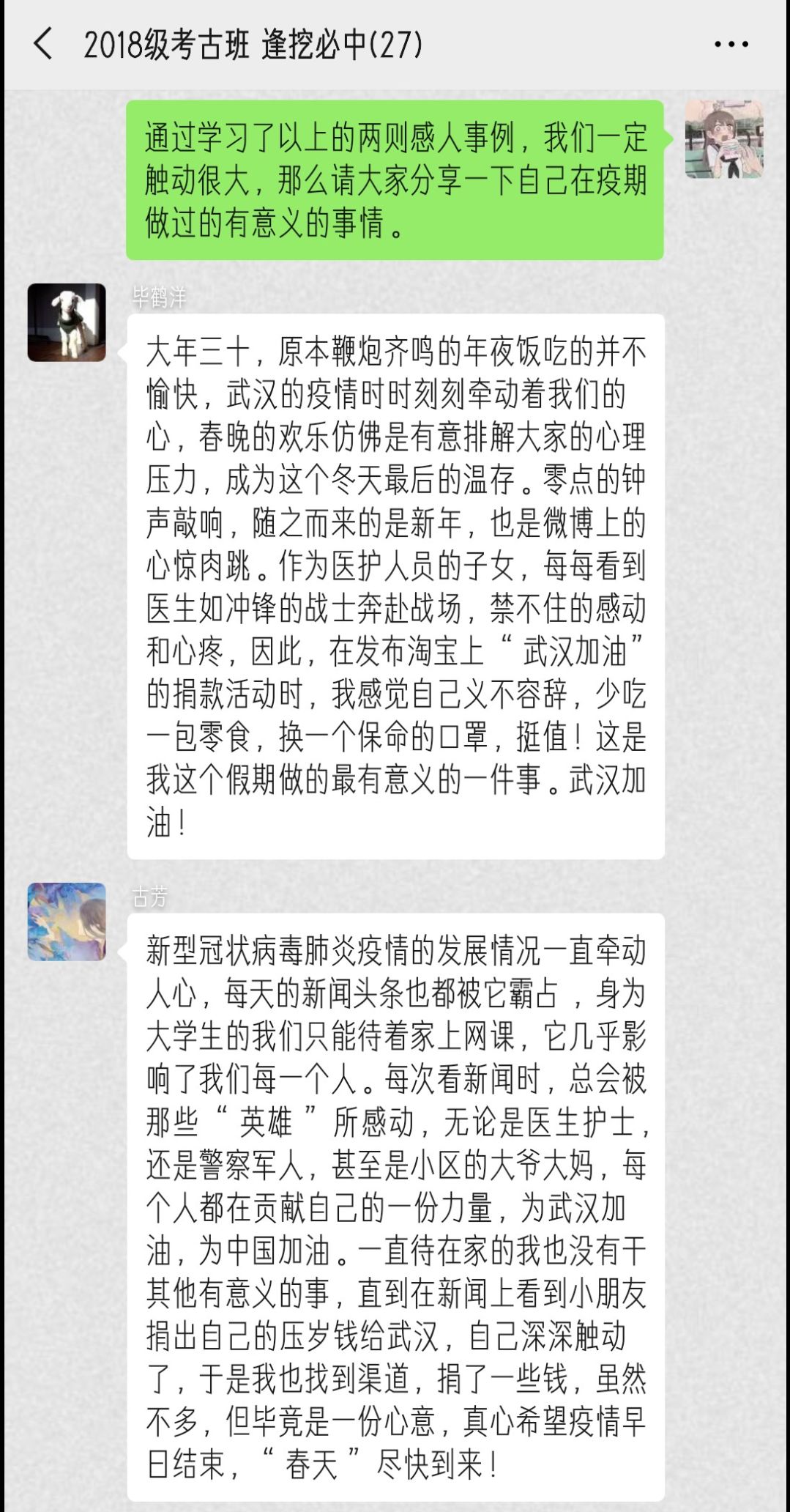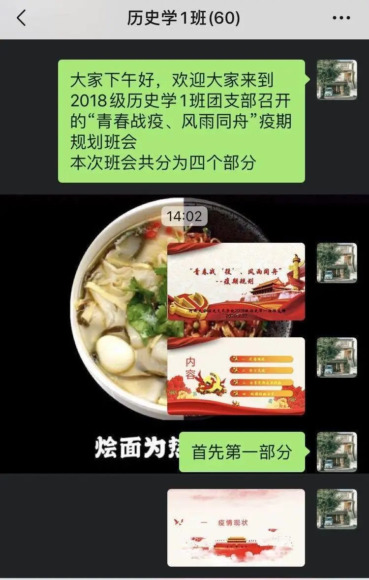 2月27日下午,伟德国际1949官网本科生2018级特别主题班会——“青春战疫、风雨同舟”第2期如期举行。本次班会由各班团支书主持,同学们通过微信群、QQ群、腾讯会议等平台准时参加,重点围绕“疫期规划、一起规划”展开学习、讨论。