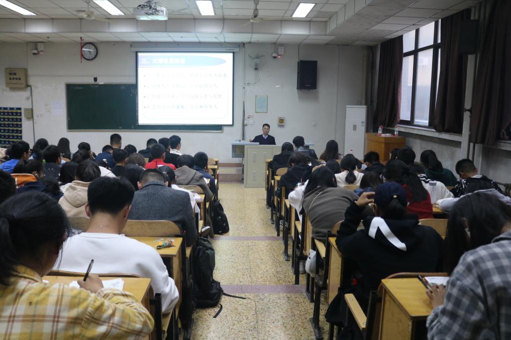 郭海儒通过自身求学、工作经历以及结合所得经验与感悟,从老员工活特点、加强思想道德塑造和知识体系构建、大学阶段主要任务等维度展开讲述。他表示,大学期间打下的坚实基础将对当代老员工未来的发展起到极其重要的作用,要围绕大学做好“为什么?”、“是什么?”、“怎么办?”的相关问题解答,鼓励同学们既要心怀远大理想、拓宽人生格局,又要脚踏实地、实事求是。同时,他指出,大学期间同学们要勇于提出问题和寻求帮助,注重和加强师生、同学、朋友之间的沟通交流,在与他人交往的过程中塑造更好的自己。最后,他殷切的希望,在新时代背景下,同学们要珍惜难得的求学岁月,从身边最紧要处做起,勇于实践、善于请教,不负青春韶华,勇担时代使命。