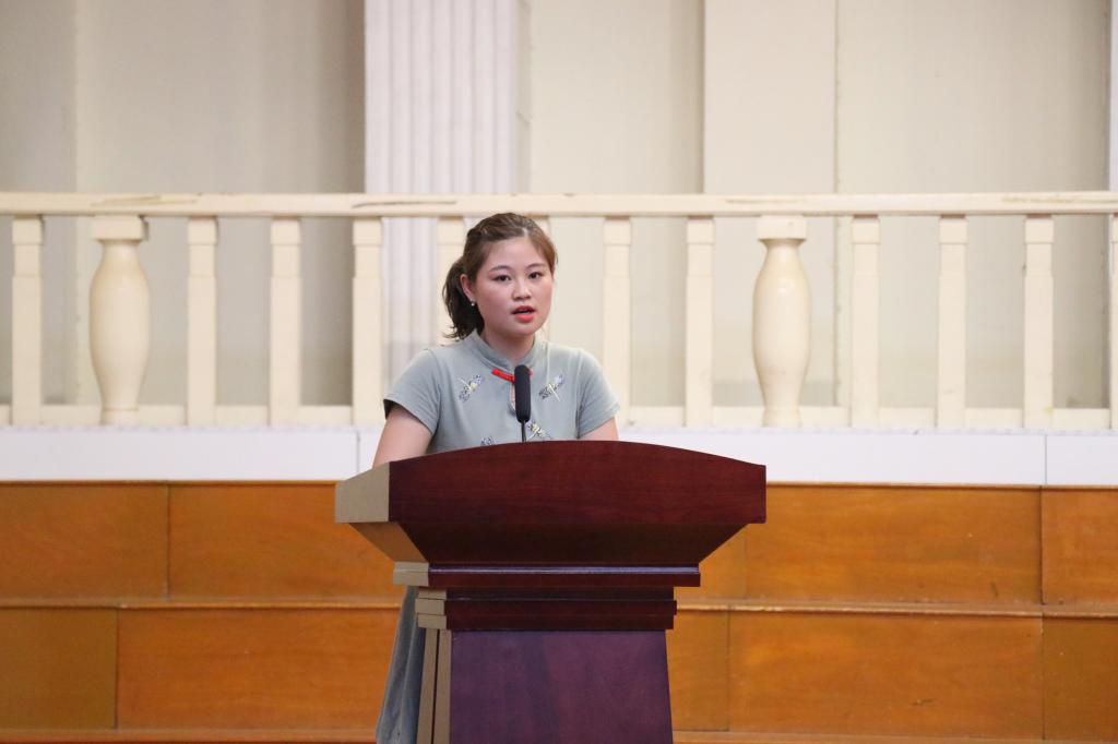 老生代表2018级研究生王慧结合自己在伟德国际1949官网五年的学习历程分享了她的学习经验。她希望学弟学妹们能注重学习与思考的结合,懂得明确目标和承担责任,也要注重修心和修身,做一名品学兼优、有浩然之气的正人君子。