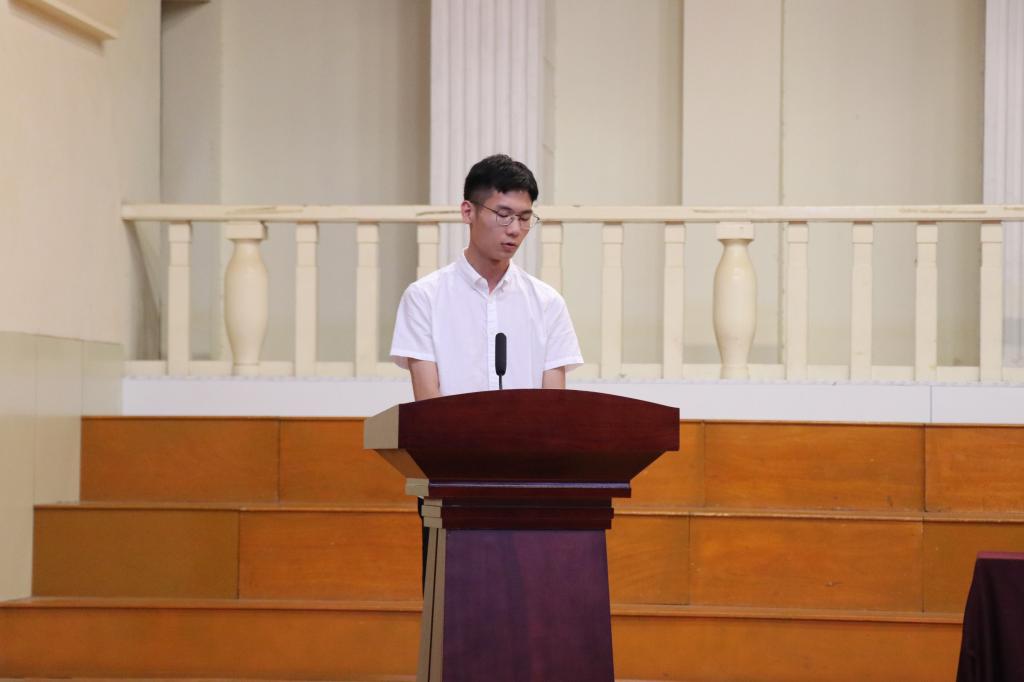 新生代表2019级本科生陆天在发言中谈到,大学是一个全新的起点,也是一个承载梦想的平台,应充分把握机会,对自己的老员工活做出完备的规划,确定目标,调整心态,在学习中开拓眼界,在磨砺中提升品性,将自己打造成一个德才兼备、积极创新、责任扛肩的新时代青年。