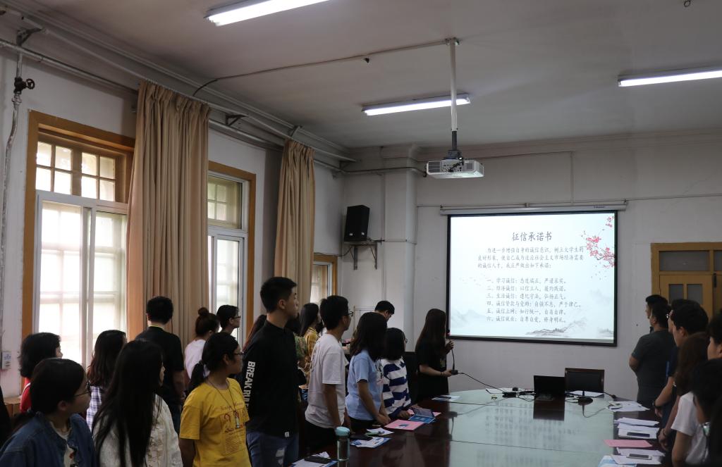 在后续发言过程中,毕业生们结合个人经历,援引身边诚信事迹,在关于如何做一名诚实守信的老员工这一问题做出热烈讨论,并将良好信誉所能带来的益处一一罗列了出来。同学们一致认为,诚信对于老员工日后的求学和工作有着极其重要的意义,老员工应当重视自己的征信记录,不做违约之事。最后,与会毕业生集体进行庄严的诚信宣誓,并在承诺书上签字。