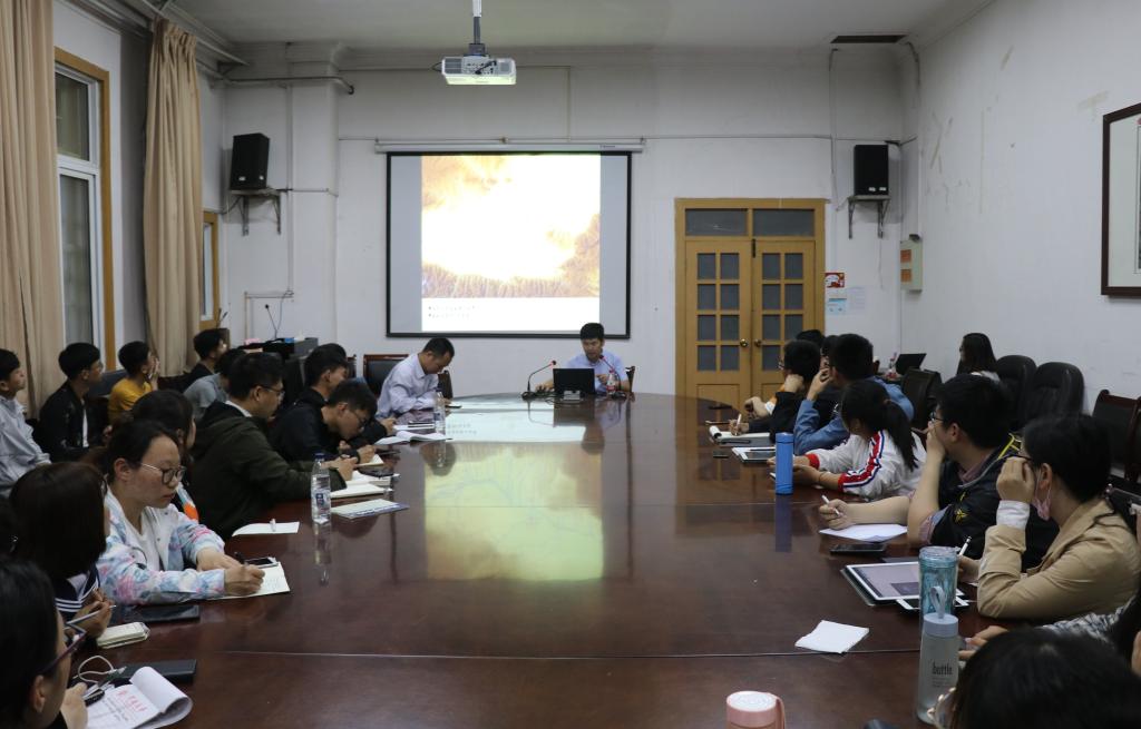 讲座开始后,杨利平向在场师生介绍了杨官寨遗址的地理概况,并讲述了他们发现杨官寨遗址的过程。另外,根据陶器规模和房子分布状态等线索,杨利平认为杨官寨遗址是典型的仰韶文化晚期早段遗址。在遗址中,考古人员有了很多重大收获,更重要的是发现和确认了国内目前所知庙底沟时期唯一完整的环壕聚落。杨利平通过图片直观地展示了考古队对环壕的发掘和在环壕西门址出土的大量完整陶器。接着,杨利平介绍了在遗址出土的不同类型和用途的陶器,陶器的制作和造型表现了当时人们休闲的状态有着很强的随意性。在环壕里,考古队对遗址东北角进行了发掘,发现了遗址大型庙底沟文化成人墓地。墓地的形制有土坑竖穴墓和偏洞室墓两种,而墓葬中的随葬品、装饰品对于研究庙底沟文化具有重要意义。杨利平还向大家分享了考古队获得这些新发现的心得经验,就是在立足于传统考古的基础上,加强综合研究,重视资料管理,促进文物的保护。最后,杨利平提到,目前庙底沟文化社会研究已取得了一系列的基础资料和大数据,将来会有更多的研究成果和最新研究动态公诸于众。