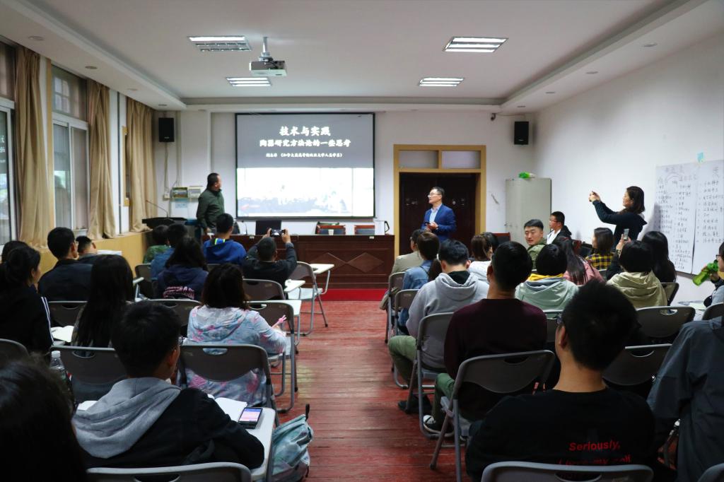 荆志淳教授谈吐幽默,广泛援引前沿案例,课堂氛围十分活跃。他强调实验与实践的研究思路不仅为到场的各位师生打开了新的思路,也提供了更加灵活的研究技巧,得到了在场师生的一致好评。