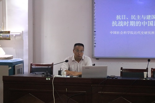 左玉河教授首先明确了“抗战时期”特指八年抗战。他提出抗战时期中国政治思想演变主要为抗日、民主、建国三方面,并重点讲解了国民党的政治思想。左玉河教授指出,在抗日方面,面对日本的全面侵华,全民族团结抗战是惟一出路。因此国民党的对日态度经历了攘外必先安内——停止内战——容共御侮——合作抗日的转变。国民党还根据新形势对三民主义作了新的阐释,突出了民族主义的时代主题,强调了中华民族的统一性。民主方面,国民党一定程度上调整了战时政治理念,开放了部分政权,但其对自由主义存在认识误区,认为“国家至上”,反对个人自由。战时蒋介石不断集权,形成了一人独裁的局面。建国方面,国民党以抗战与建国并行为基本方针,主张建立一个三民主义的国家。这三方面的演变形成了抗战时期国民党的特殊政治思想。