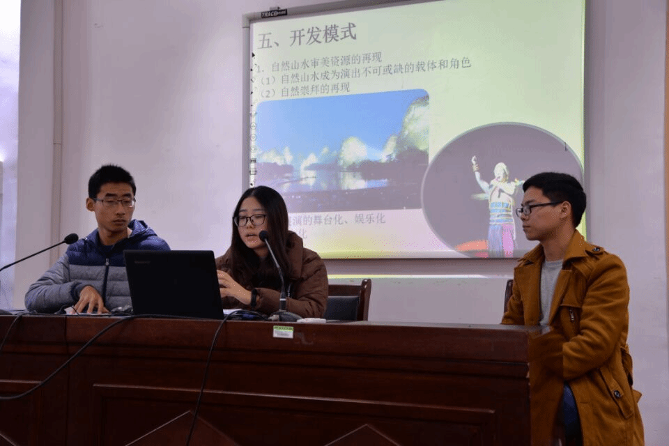 第一部分为新闻播报,主持人介绍了云南不合理低价游下架、山东省成立旅游发展委员会、休闲指数报告发布等最新业界资讯。随后李自超从分类、基本运营模式、新发展三个角度对主题进行了阐释。第二部分为主题汇报的环节,首先14级孙亚楠、周悦悦、张春霞三位同学进行了“印象”、“又见”、“千古情”三个系列旅游演艺的相关汇报,孙亚楠同学从运作模式、运作特色、基本营销三个角度阐明“印象”系列的发展现状,周悦悦以“又见平遥”为案例强调旅游演艺开发中文化传承和内容形式上创新的重要性,张春霞从产品开发入手,总结出文化融合、技术创新、线上营销、多元效果是演艺成功的关键。接下来15级肖亮同学从宏观角度介绍演艺的定义、类别、现状、存在问题及发展方向。第三部分为自由讨论环节,同学们就自身对旅游演艺的相关理解进行了激烈的讨论。第四部分为纪念刊编辑汇报环节,2014级赵旭同学介绍了“文化旅游”学术沙龙纪念刊编辑工作的进展情况,并向在场师生介绍了辑刊的后续发展方向。