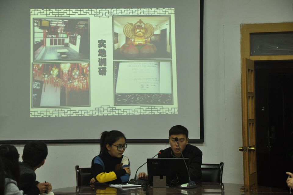 沈联衢同学首先以“李金早局长对厕所革命有了新要求”和“中国首届旅游金融发展论坛”的两则新闻作为开场,接着张鹏同学代表 “汴京灯笼张” 主题博物馆调研的小组,做了调研状况的汇报和总结。介绍了汴京灯笼张的发展历程与其艺术魅力。通过无骨花灯,滚地灯,八仙过海等展品的展示,充分体现了“汴京灯笼张”的高超技法。与此同时,他指出,现如今这家民营博物馆的发展陷入了困境,并对此提出“设置观众体验区,发展彩灯文化产业”等发展建议。