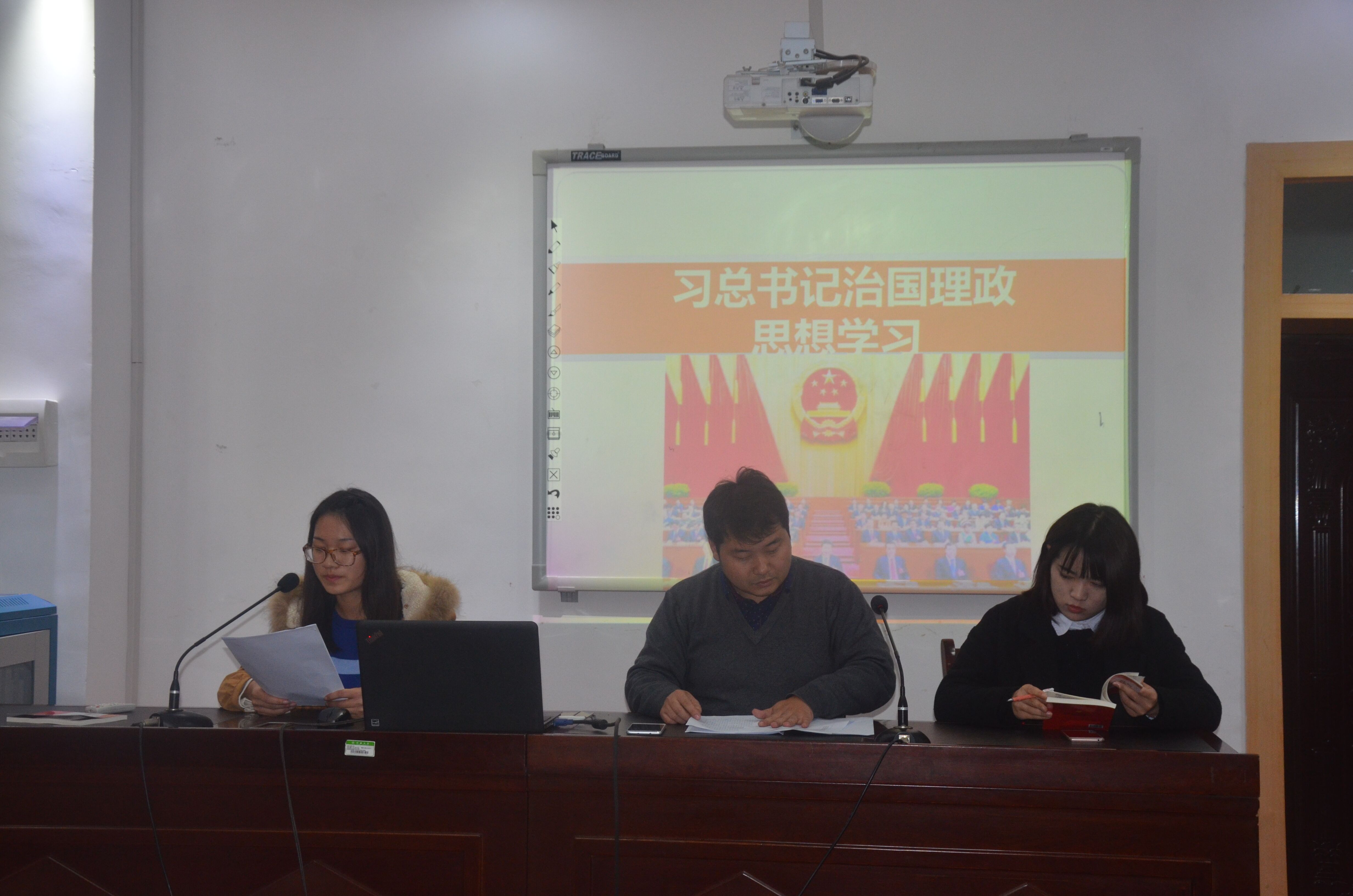 随后,2015级团支书苗静静同学带领大家学习相关文件,学习指出,以习近平同志为核心的党中央治国理政的主要内容可归纳为:1.以为民为核心价值、以担当为政治责任、以发展为第一要务的治国理政新理念,2.以坚持和发展中国特色社会主义为主题、以总布局各领域创新理念为支撑的治国理政新思想,3.以中国梦为战略目标、以“四个全面”为战略布局、以国家安全和强军为战略保障的治国理政新战略。“三新”是党中央结合新形势的创新,是针对目前的形势和情况,在宏观层面、理论方针层面所做出的重大创新,为新的历史条件下深化改革开放、加快推进社会主义现代化提供了科学理论指导和行动指南。