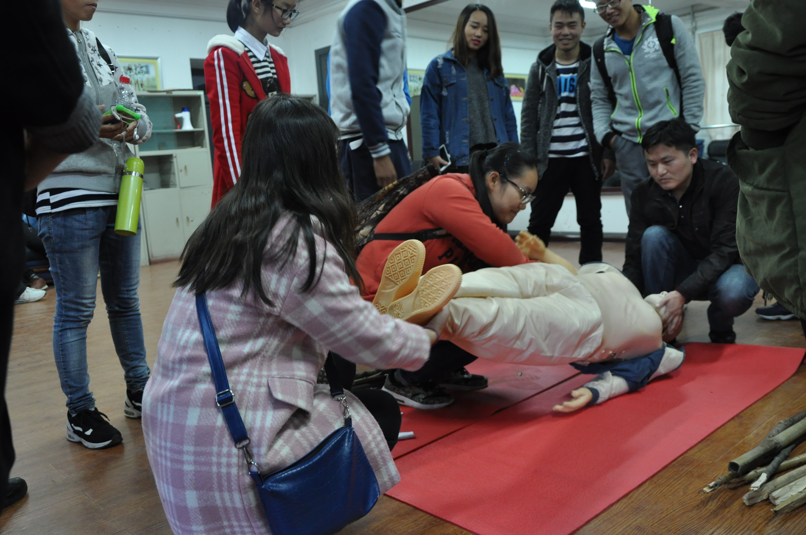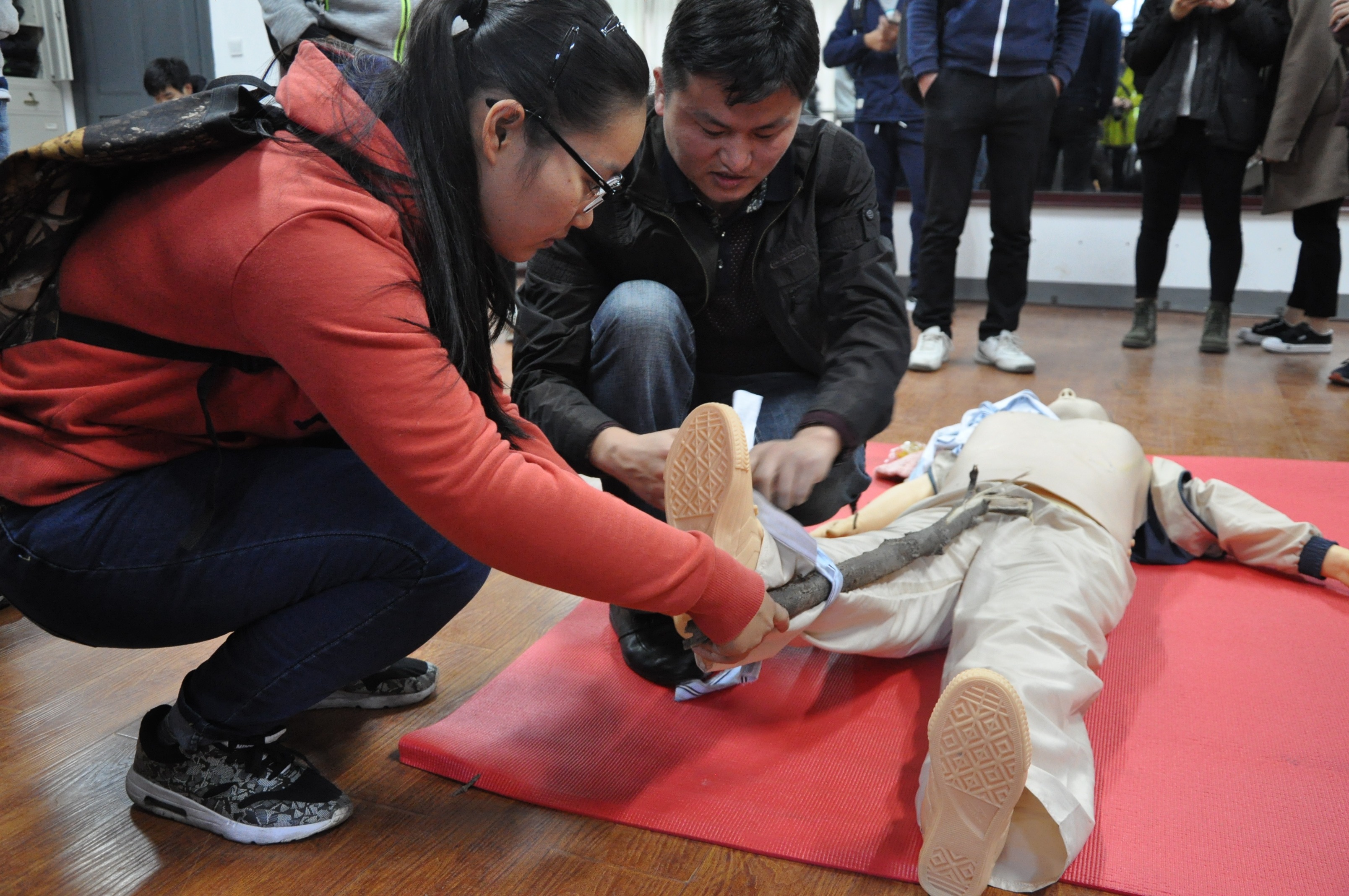理论指导后,张玉龙医师在105教室进行实践培训,演示了急救的具体操作流程。系统的培训结束后,张玉龙医师对同学们提出的问题做了详细的解答,并指导部分同学完成了包扎止血等急救活动的亲身实践。此次技能培训圆满落下帷幕。