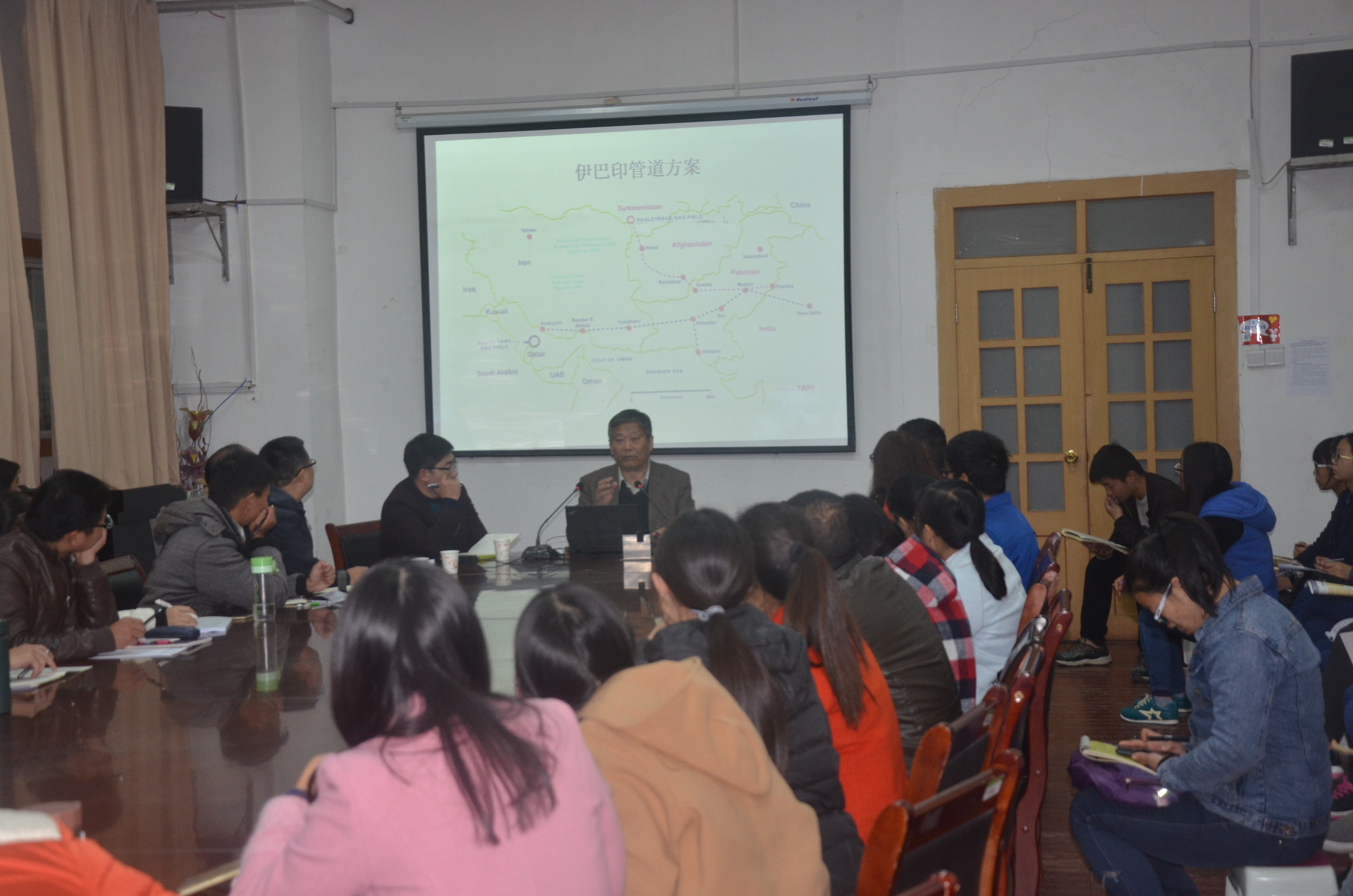 10月31日晚,中国社科院西亚非洲研究所所长杨光研究员在伟德国际1949官网三楼会议室为广大师生带来题为《“一带一路”建设与中东》的专题讲座。讲座由世界史系主任胡浩老师主持。现场座无虚席,气氛热烈。
