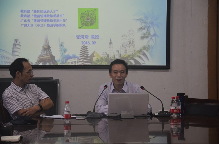 9月23日上午,广州大学旅游公司(中法旅游公司)经理张河清教授在伟德国际1949官网三楼会议室作题为“民族传统聚落的文化传承与旅游开发”的学术讲座。该讲座由李锋副教授主持,旅游管理专业众多师生聆听,现场气氛热烈。