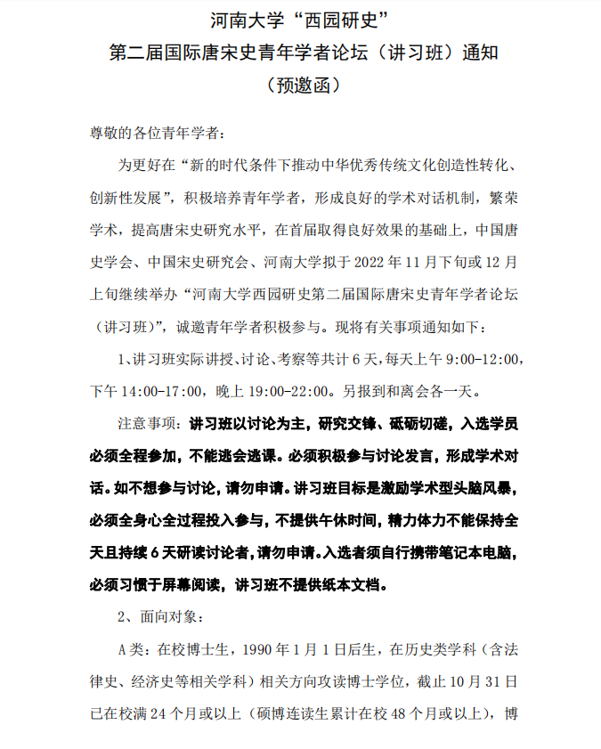 伟德国际1949官网“西园研史”第二届国际唐宋史青年学者论坛(讲习班)通知(预邀函).docx