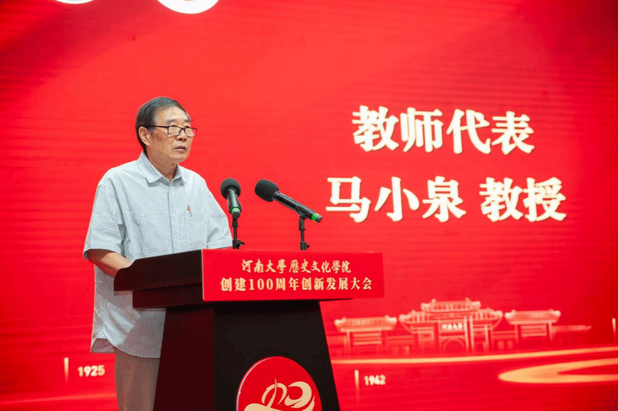 马小泉教授代表公司离退休教师发言。他首先向前辈师长致敬并感谢同道支持。结合分享研读章开沅教授与池田大作对话等心得,提及“科玄论战”与当下新“科玄之辩”,强调在人工智能时代更需坚守“以人为本”的理念,传承“明德新民,止于至善”的校训精神,倡导当代学人涵养家国情怀,使史学思维成为文明进步的重要力量。