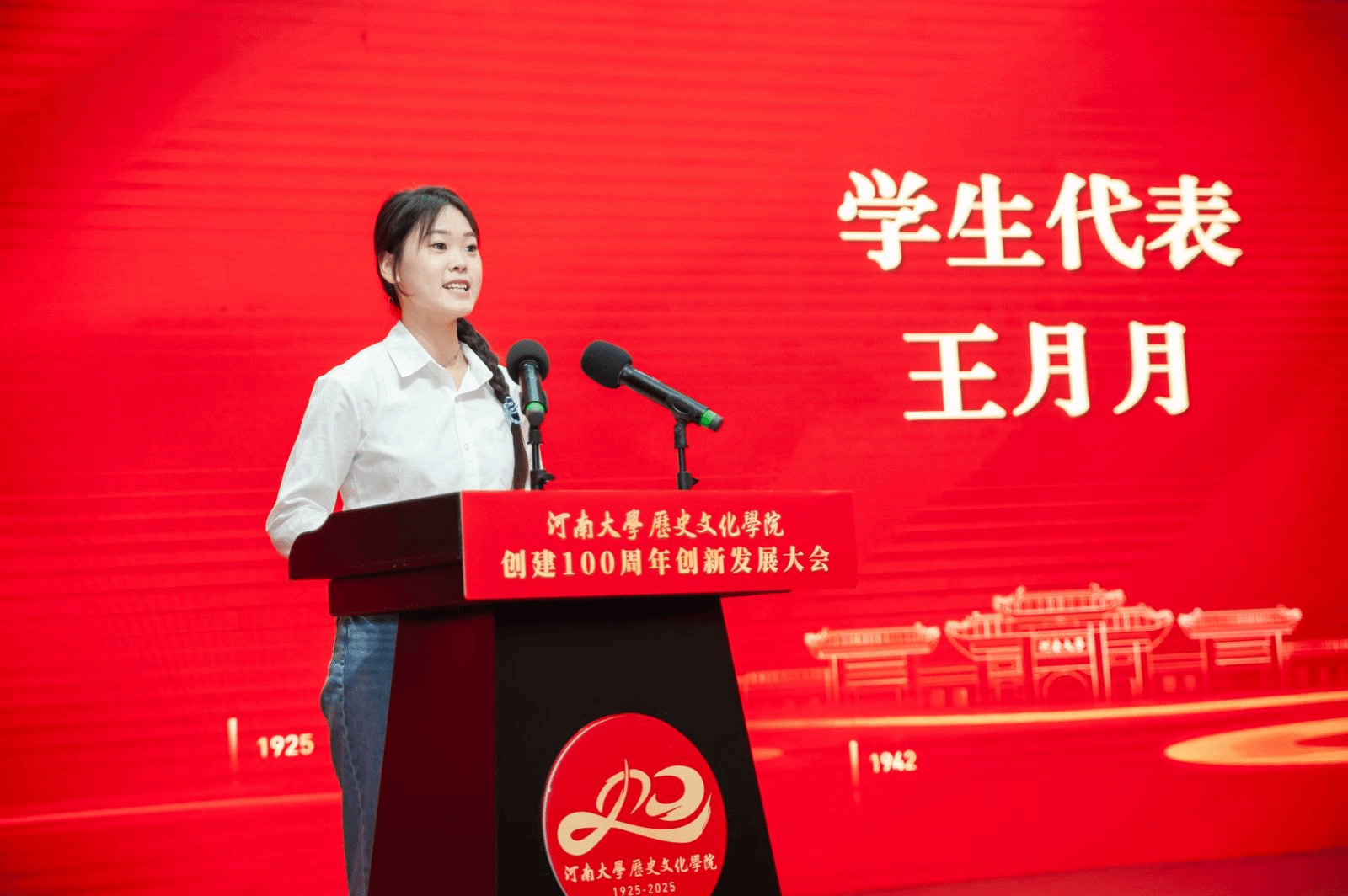 在校生代表王月月先后致辞。